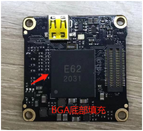 1,將芯片牢固的粘接到PCB上,具有較強的抗震動能力、抗撞擊、抗跌落等機械應(yīng)力,避免芯片錫球與PCB板脫焊而造成功能不良,提高產(chǎn)品的可靠性.